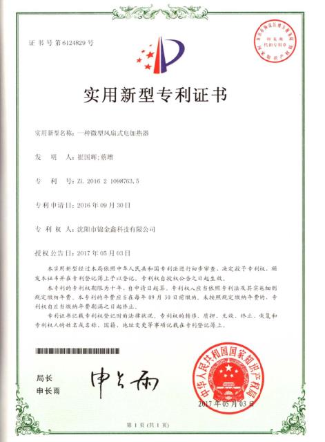 實(shí)用新型-風(fēng)扇式電加熱器262.0-1
